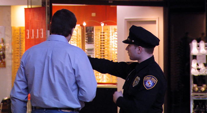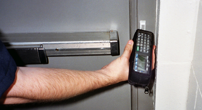 Conley Group Officer Checks a Card Access Reader During a Foot Patrol