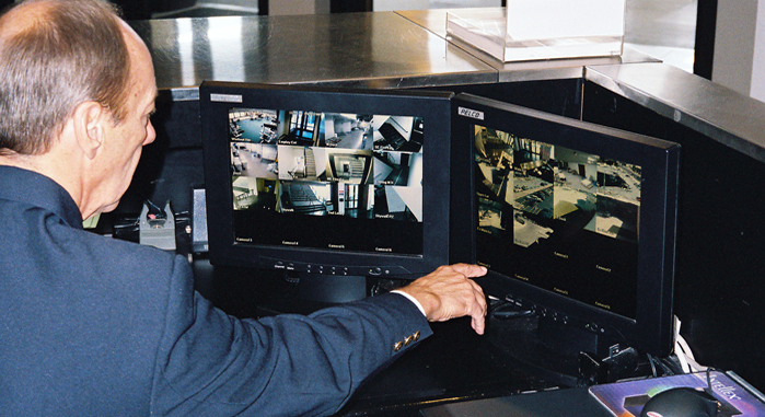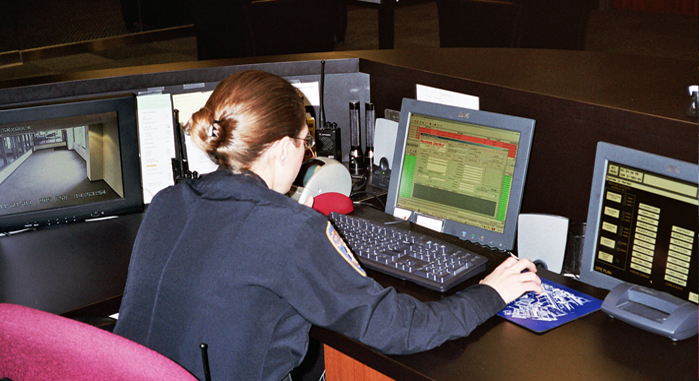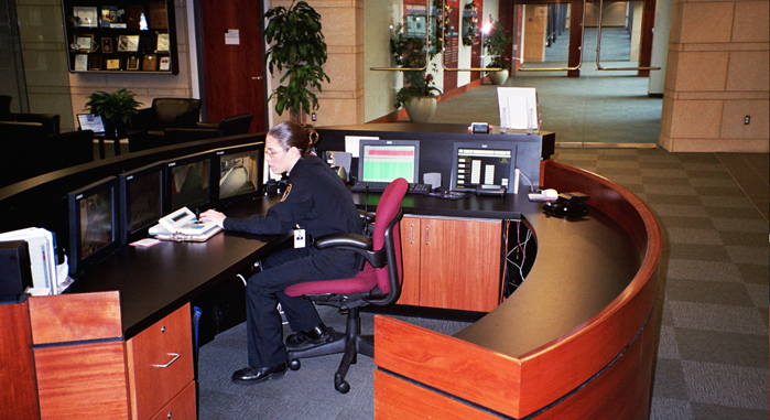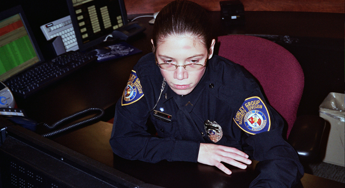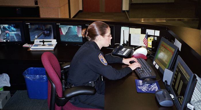 Conley Group Officer Watches CCTV Monitors at a Security Center