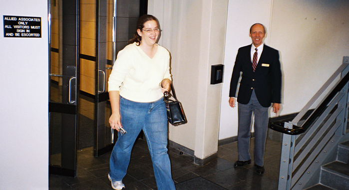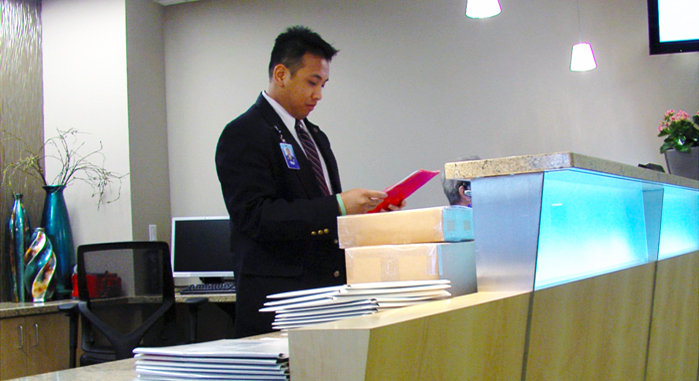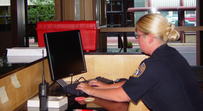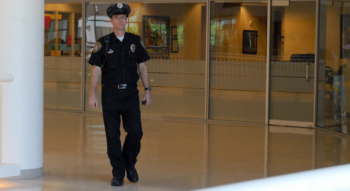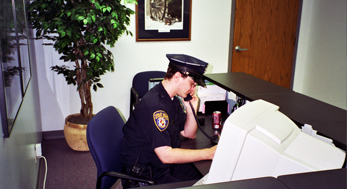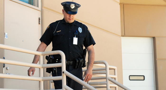 Security Officer Staffs the Main Desk at a Public Schools Building