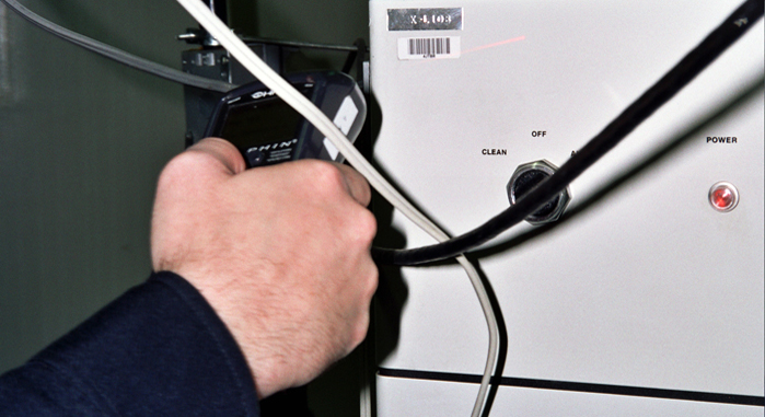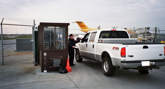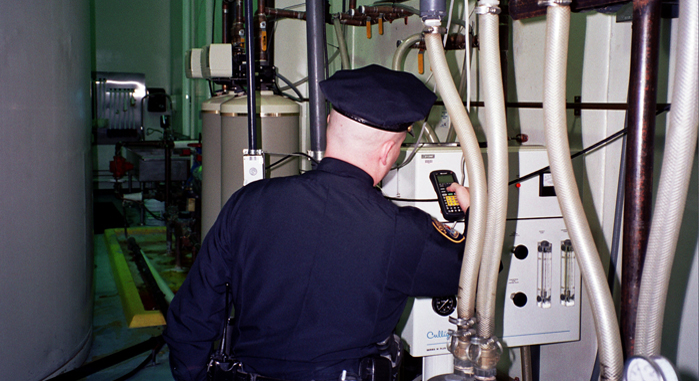 A Conley Officer Scans a Checkpoint While Conducting an Inspection