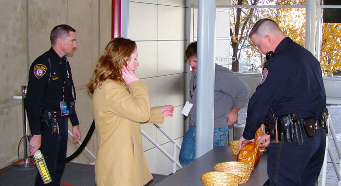 An Armed Conley Group Officer Checks for Any Suspicious Packages