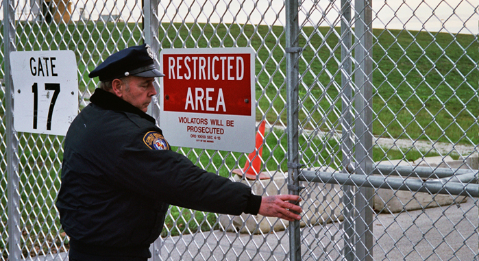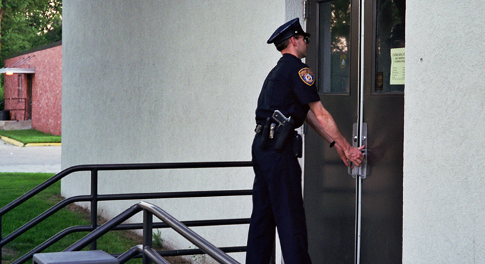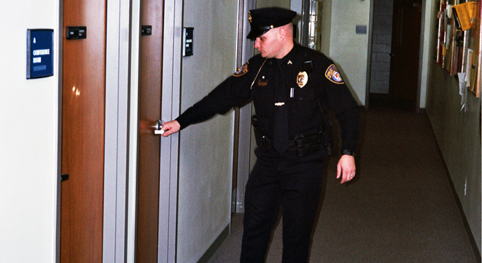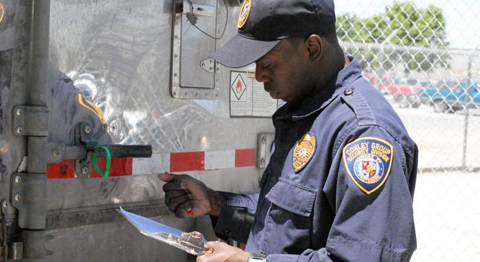 A Conley Group Officer Conducts a Security Inspection of a Building