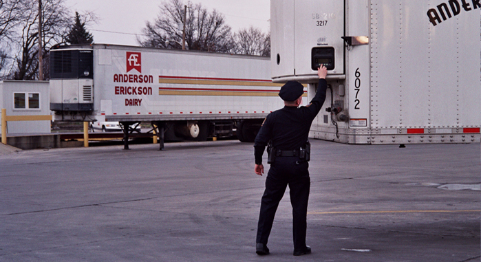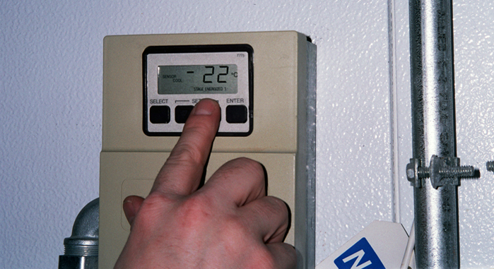 Security Officer Checks the Temperature on a Refrigeration Unit