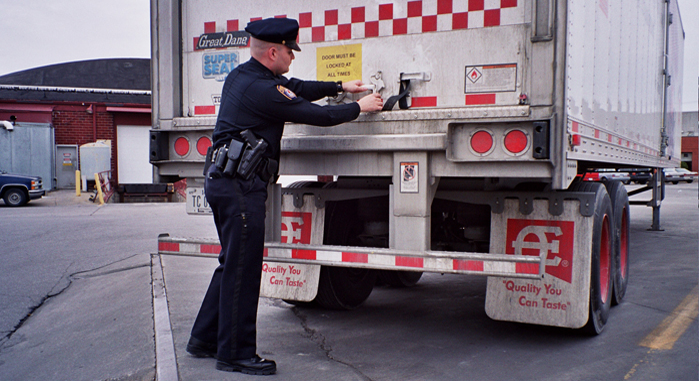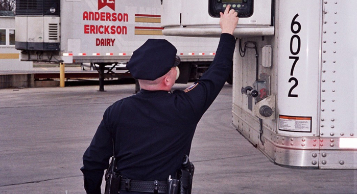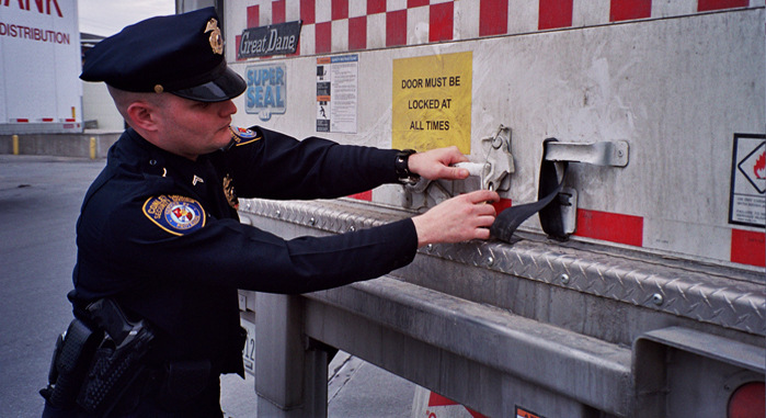 Security Officer Checks a Truck Seal at an Industrial Plant
