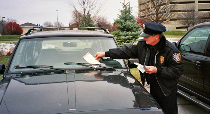 Security Officer Tickets an Illegally Parked Vehicle at a School